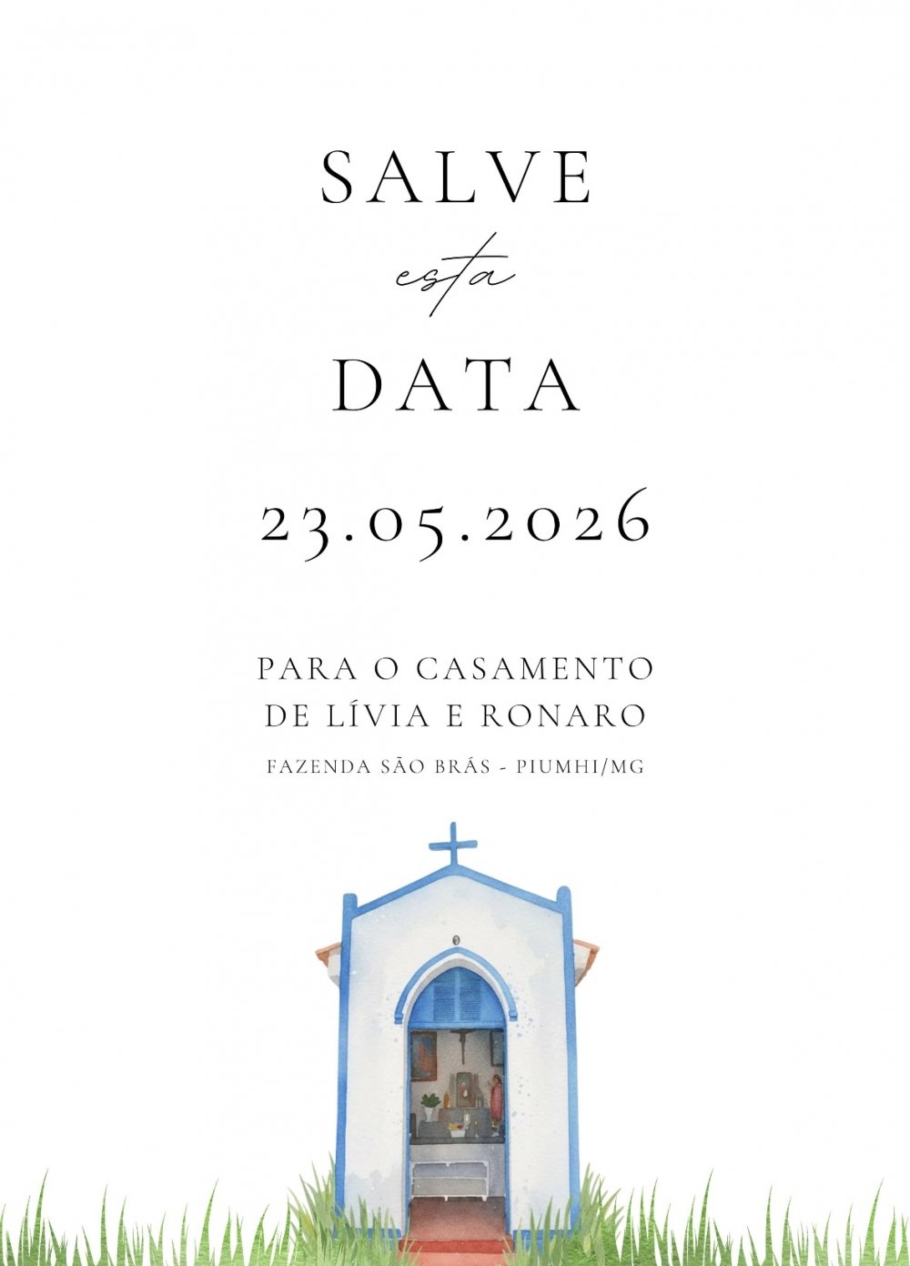 O sacramento do nosso matrimônio ocorrerá na Capela São Pedro - localizada na sede da Fazenda São Brás, em Piumhi-MG, no dia 23 de Maio de 2026, às 11 horas.